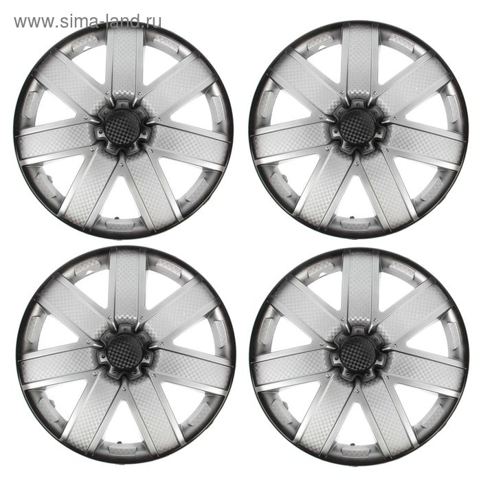 Колпаки колесные R15 "ГАЛАКСИ", серебристо-черный карбон, набор 4 шт.