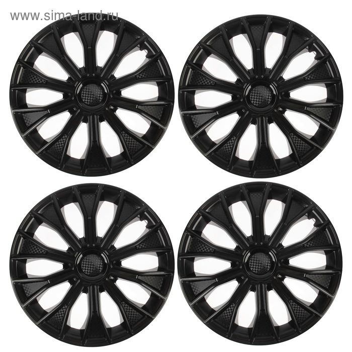 Колпаки колесные R15 "ВОЛТЕК", черный глянец карбон, набор 4 шт.