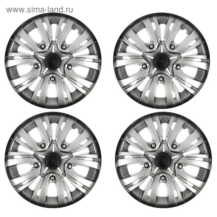 Колпаки колесные R16 "ЛИОН", серебристо-черный карбон, набор 4 шт
