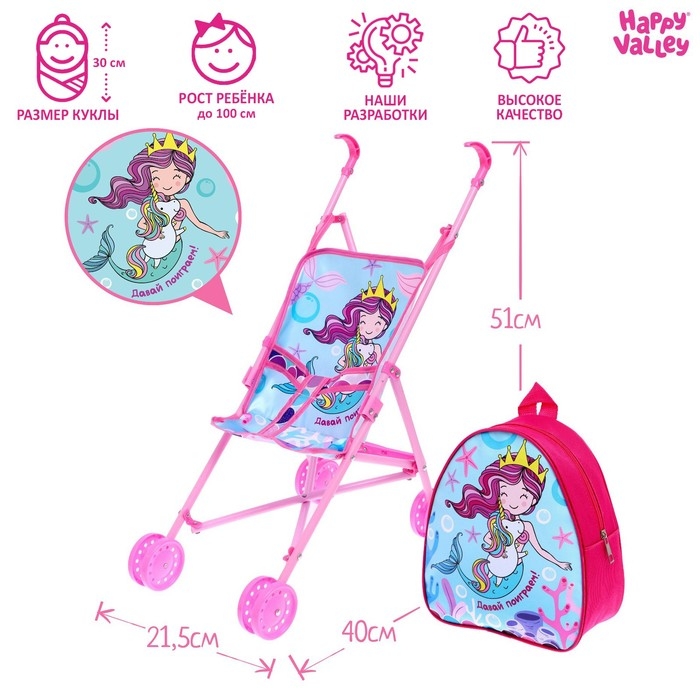 Коляска для кукол «Давай поиграем», трость, с рюкзачком