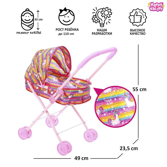 Коляска для кукол «Модная» универсальная, металлический каркас