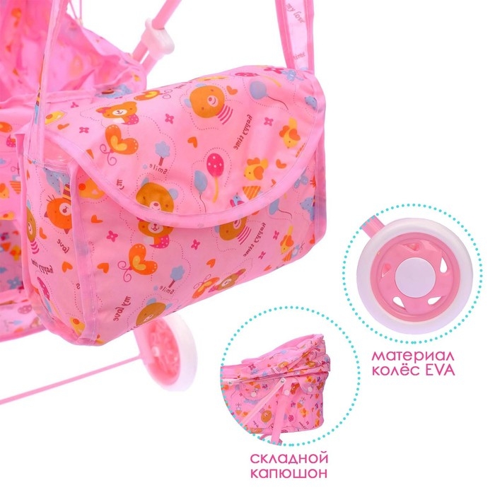 Коляска для кукол, универсальная, с корзиной, с сумкой