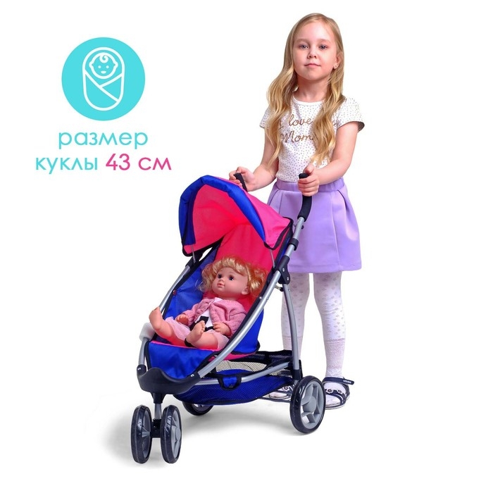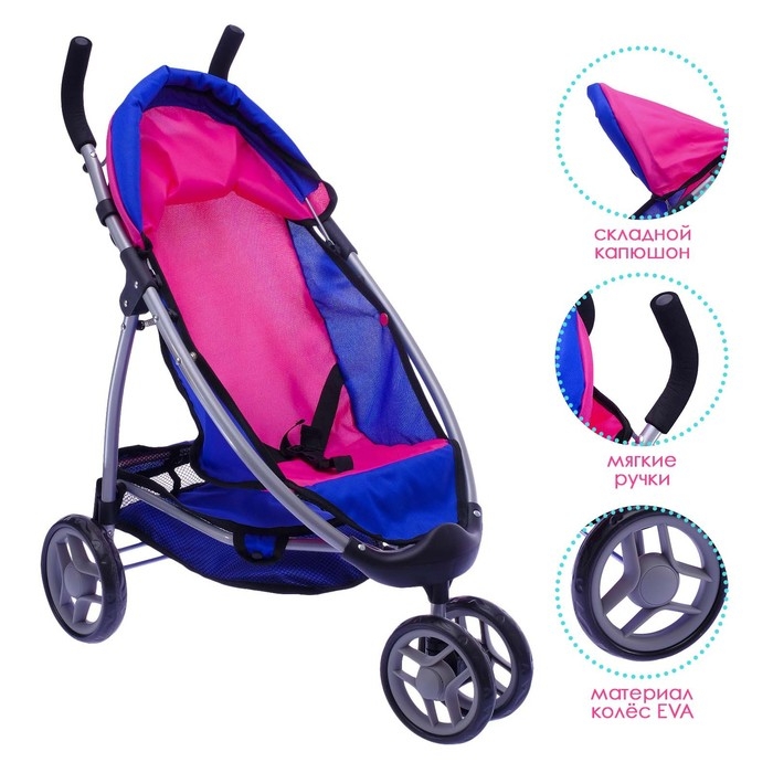 Коляска для кукол, с переноской, трёхколёсная, металлический каркас