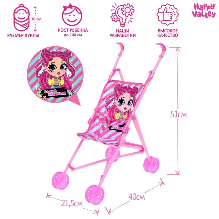 Коляска для кукол «Самая красивая», трость