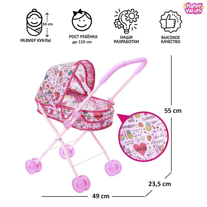 Коляска для кукол «Улыбнись!», универсальная, металлический каркас
