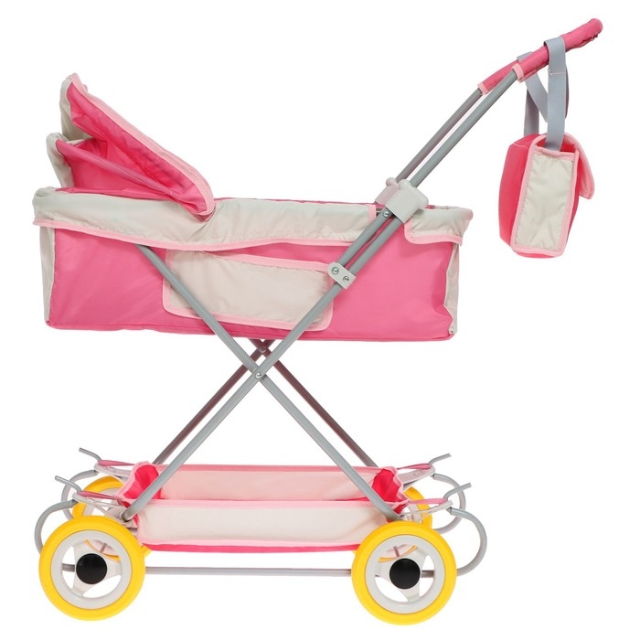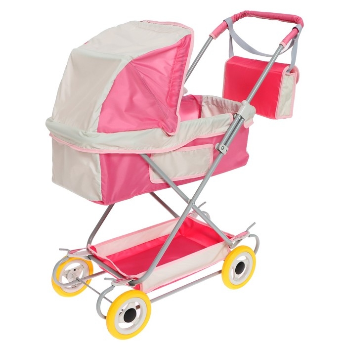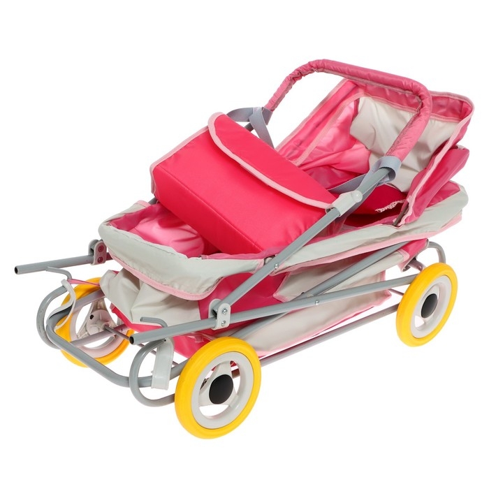 Коляска кукольная №16, цвет розовый с серым