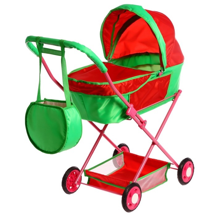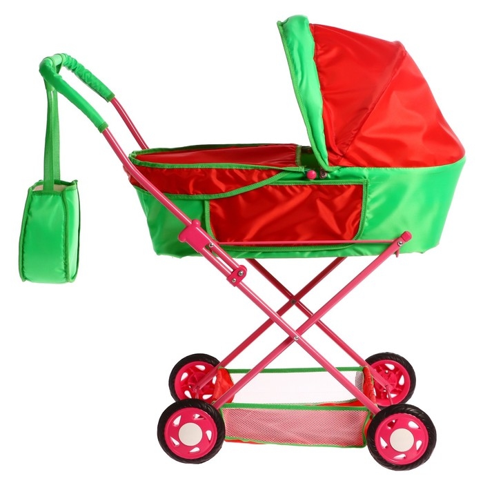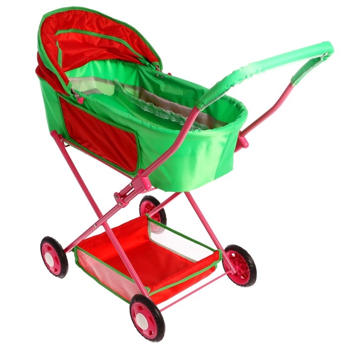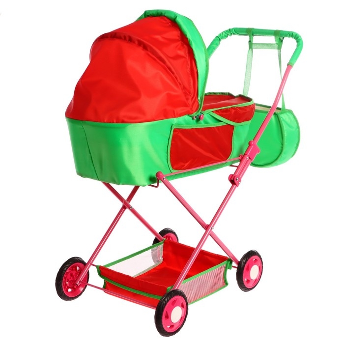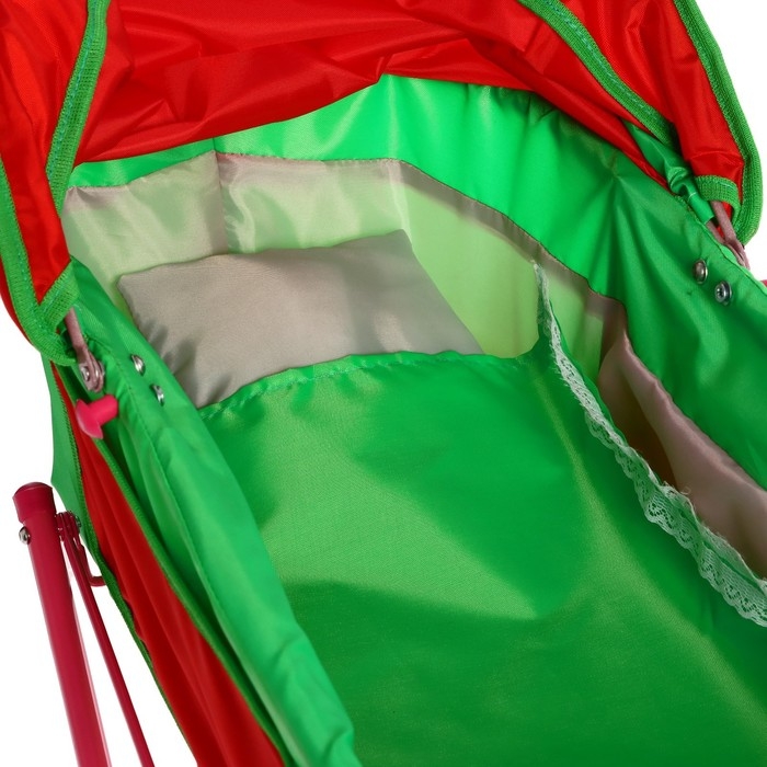 Коляска кукольная №4, цвет красно-зелёный
