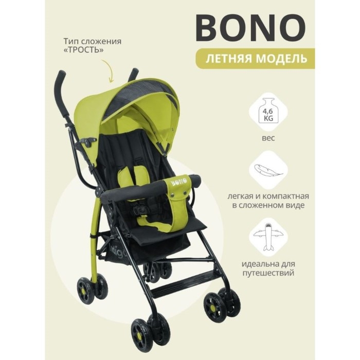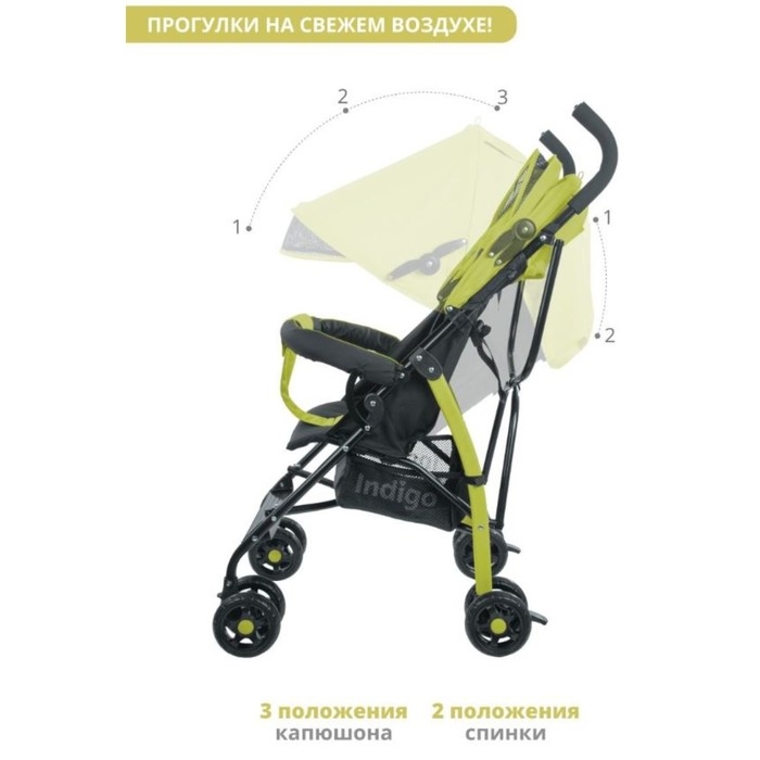 Коляска прогулочная детская Indigo BONO, складывается в трость, разъемный бампер, цвет лимонный
