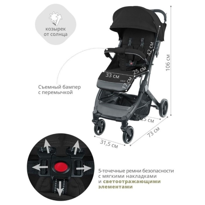 Коляска прогулочная детская Indigo TRIP, цвет черный