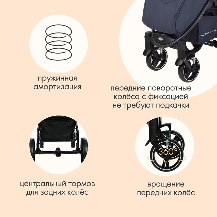 - Пружинная амортизация на передних колёсах - малыш не почувствует даже серьёзных препятствий на дороге