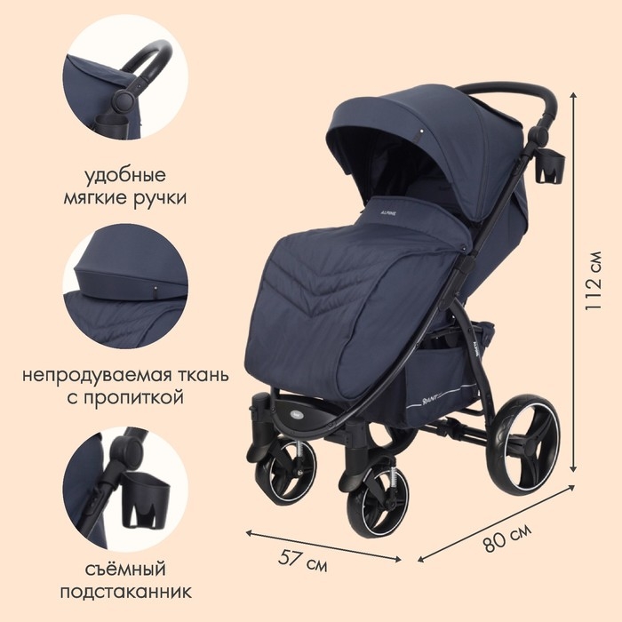 - Широкий капюшон, раскладывающийся до бампера, защитит кроху от осадков, ветра, палящего солнышка