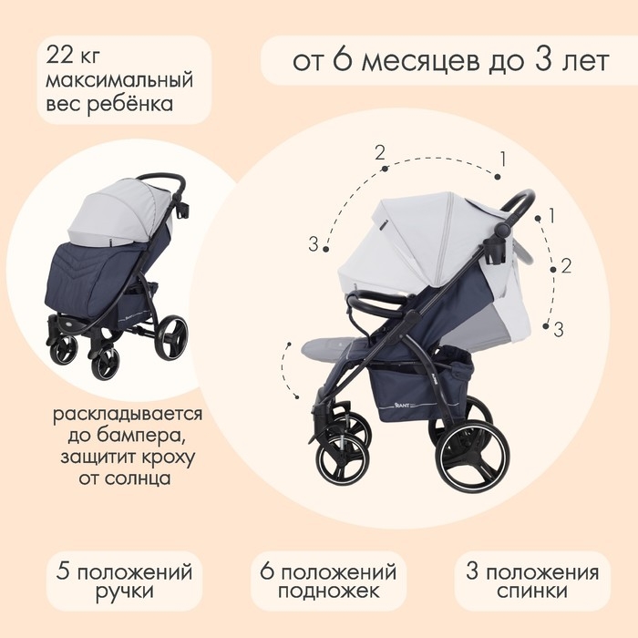 Коляска прогулочная детская Rant Basic Alpine, цвет светло-серый