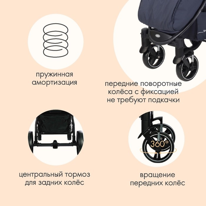 - Пружинная амортизация на передних колёсах - малыш не почувствует даже серьёзных препятствий на дороге