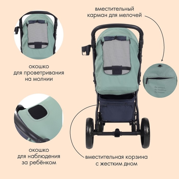 - Пружинная амортизация на передних колёсах - малыш не почувствует даже серьёзных препятствий на дороге