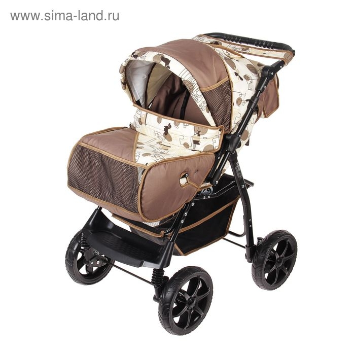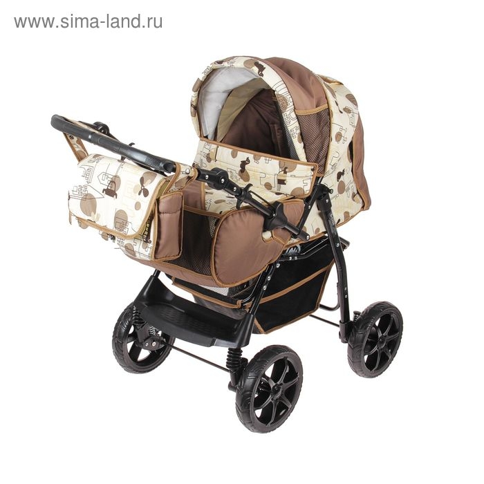 Коляска-трансформер «Гном», пластиковые колёса, оттенки бежевого, рисунок МИКС