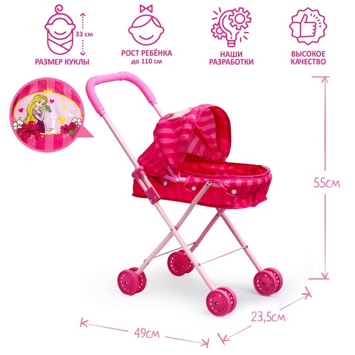 Коляска универсальная для кукол,прогулочная "Рапунцель" Принцессы