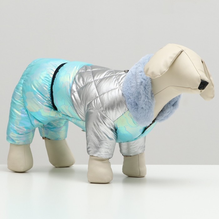 Зимний и уютный комбинезон для вашего питомца. Комбинезон застегивается по животу на кнопки, имеет удобную резинку-утяжку и высокий меховой воротник. С таким милым комбинезоном ваш любимец будет не только очень стильным, но и защищенным от холода и ветра, а осенние и зимние прогулки для вас теперь только в радость! Наружная поверхность комбинезона водонепроницаема, внутри комбинезон набит плотным синтепоном, что обеспечивает тепло и комфорт. Имеется специальное кольцо для поводка. Модель унисекс (для мальчиков и девочек), в области паха живот открыт.