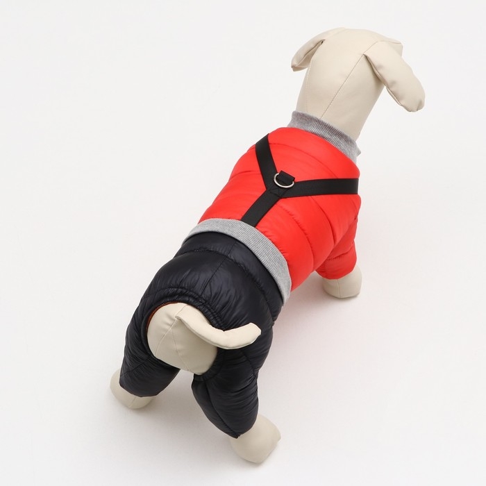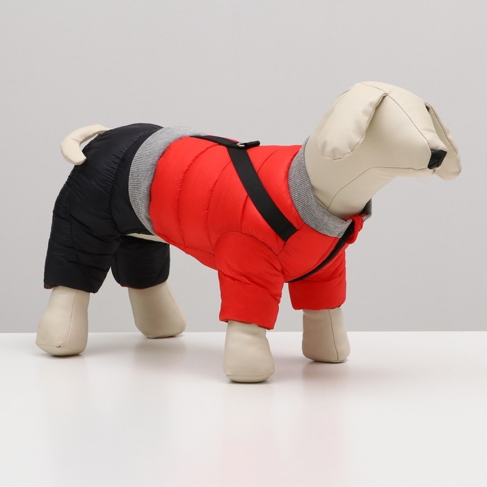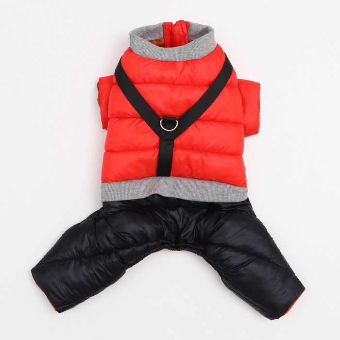 К комбинезону пришита шлейка с полукольцом для поводка/рулетки.