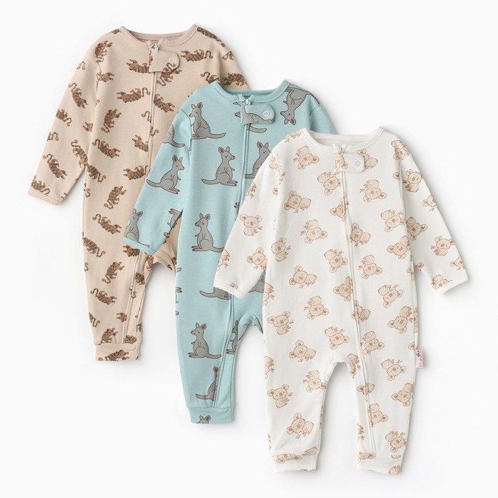 Комбинезон детский (3 шт.), цвет бежевый/зелёный/белый, рост 74 см