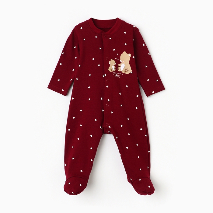 Комбинезон детский с открытыми ножками "Мишка", цвет бордовый, рост 80