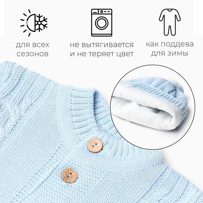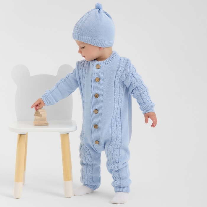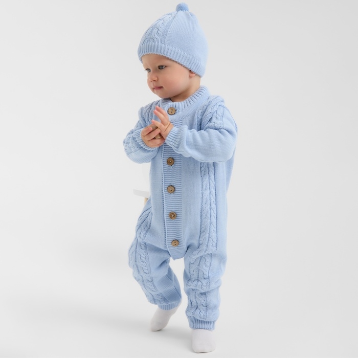 Комбинезон детский с шапочкой вязаный MINAKU, рост 68-74, цвет голубой