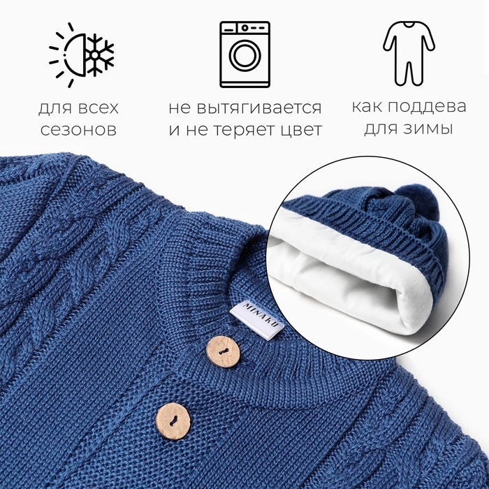 Комбинезон детский с шапочкой вязаный MINAKU, рост 74-80, цвет синий