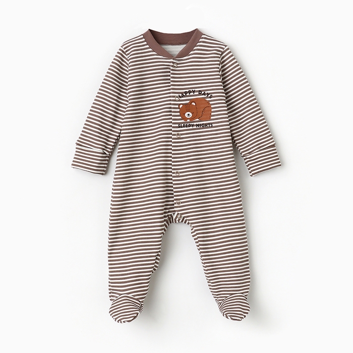 Комбинезон детский с закрытыми ножками "Мишка", цвет бежевый, рост 56