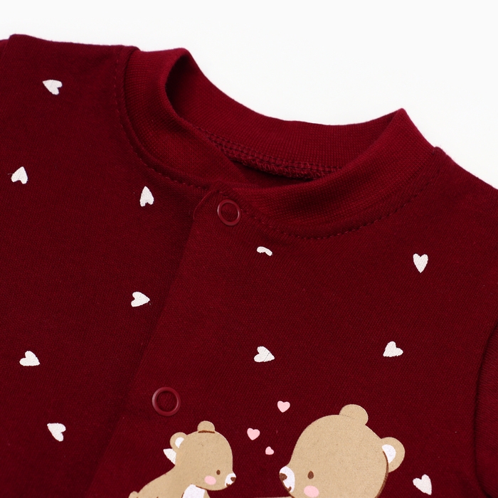 Комбинезон детский с закрытыми ножками "Мишка", цвет бордовый, рост 56