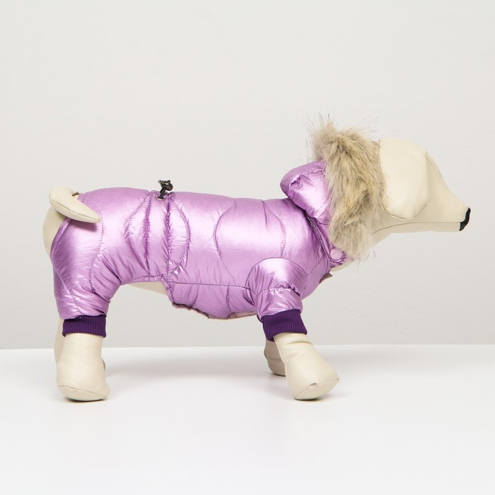 Стильный комбинезон для собак мелких и средних пород из водоотталкивающей блестящей ткани. Комбинезон удобный и комфортный, не стесняет движений. Внутренний слой набитый синтепоном, который надёжно согревает и обеспечивает воздухообмен. Ткань плотная, защищает от холода, грязи и влаги, сохраняя тепло. Комбинезон имеет капюшон с меховым краем, резинку-утяжку, отверстие для поводка и плотные резинки на лапы. Фиксируется кнопками по животу. Этот удобный комбинезон, придётся по вкусу даже самым требовательным питомцам. Модель унисекс (для мальчиков и девочек), в области паха живот открыт.