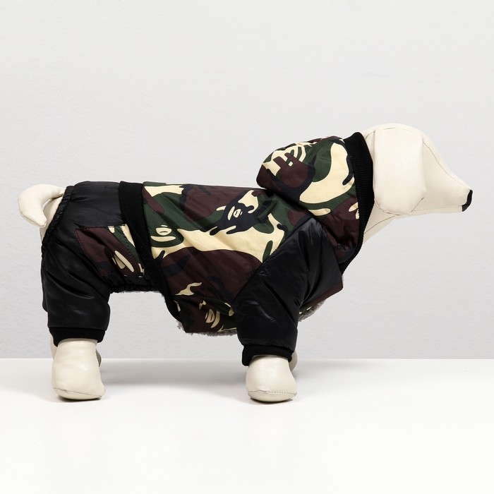 Комбинезон для собак "Камуфляж"на меховом подкладе, размер S (ДС 25, ОШ 25, ОГ 35 см)