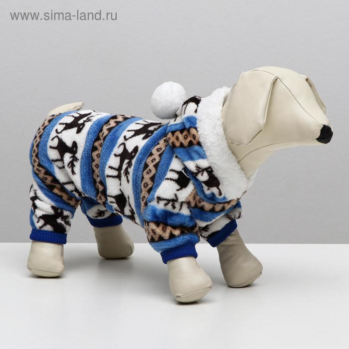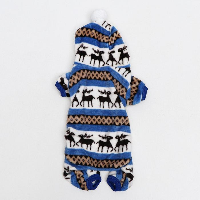 Комбинезон "Олени" с капюшоном, размер M (ДС 30 см, ОГ 40 см, ОШ 30 см), голубой