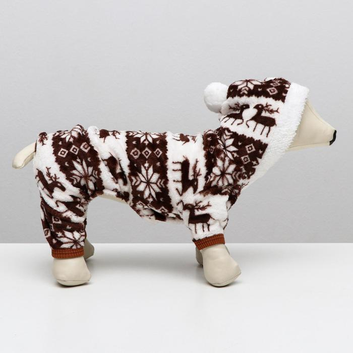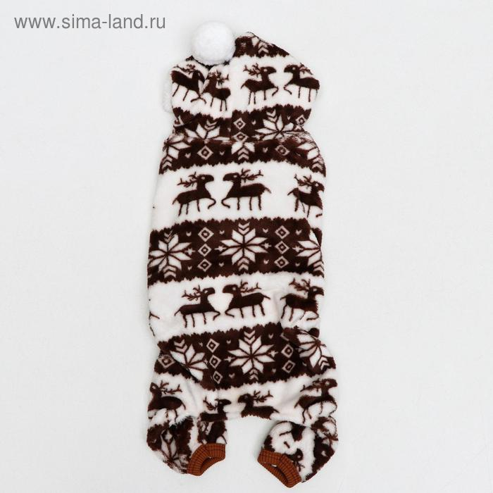 Комбинезон "Олени" с капюшоном, размер M (ДС 30 см, ОГ 40 см, ОШ 30 см), коричневый