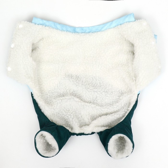 Комбинезон застегивается на удобные кнопки, это позволяет легко и быстро одевать и снимать его, не вызывая дискомфорта у вашего питомца.