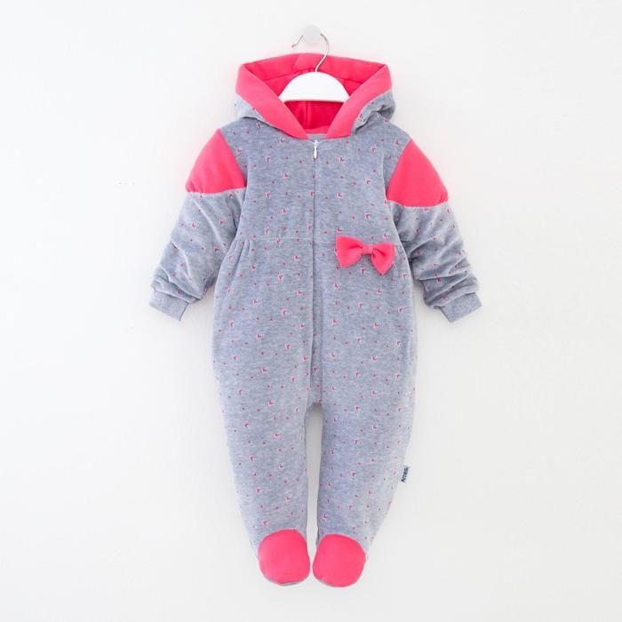 Комбинезон утеплённый, цвет серо-розовый, рост 74 см