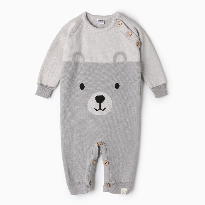 Комбинезон вязаный Крошка Я "Мордочка", рост 68-74 см, серый