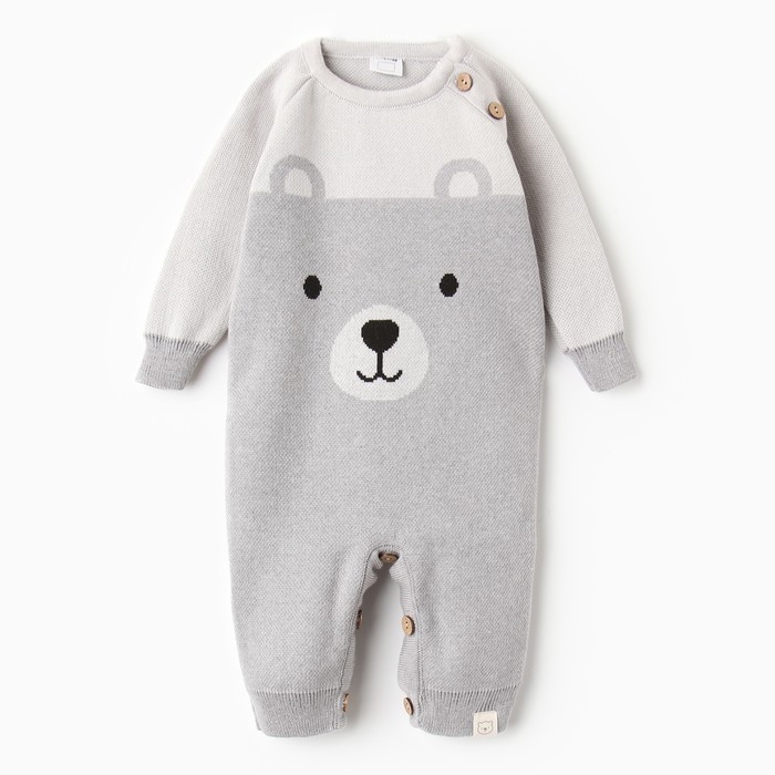 Комбинезон вязаный Крошка Я "Мордочка", рост 74-80 см, серый