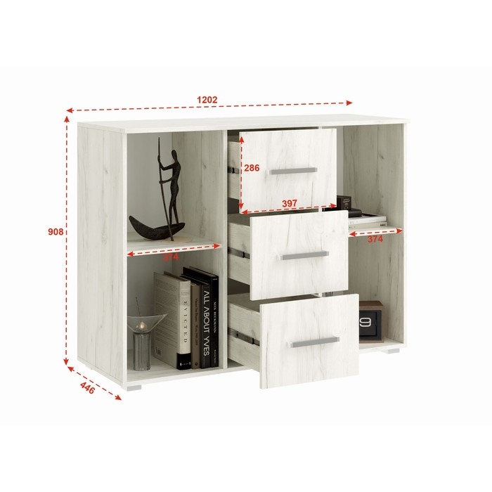 Комод 3 ящика 2 двери Фиеста, 1202х446х908, Графит/Дуб крафт белый