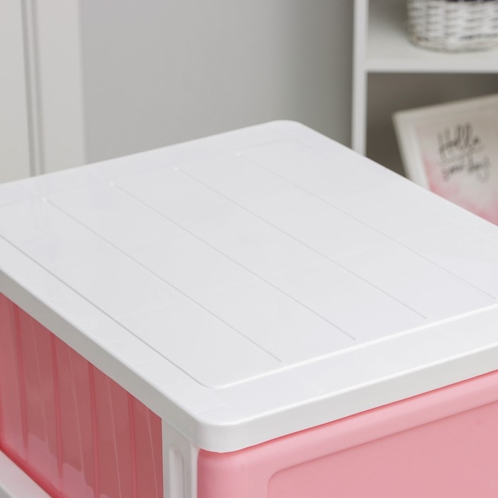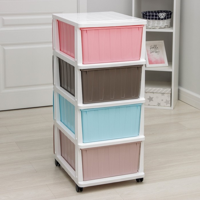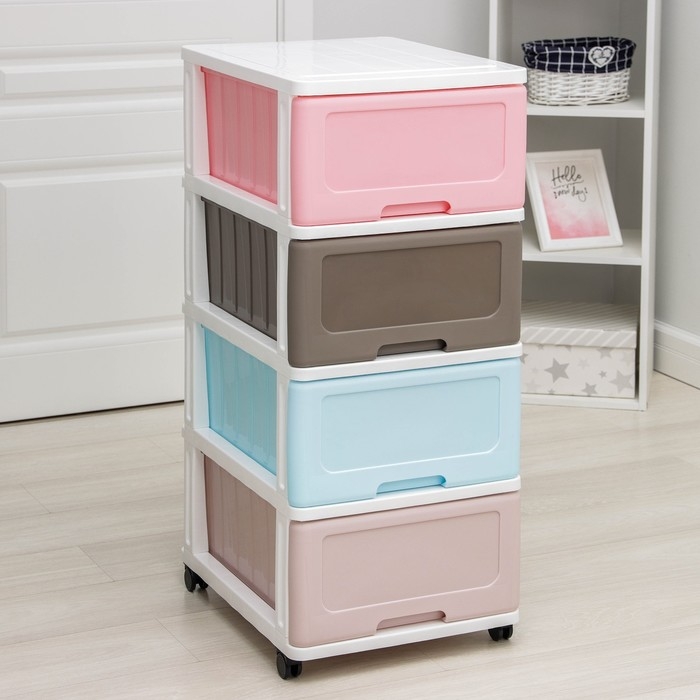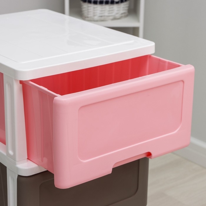 С помощью практичного пластикового комода вы правильно организуете хранение вещей. Изделие имеет жёсткую конструкцию за счёт цельных боковых стенок. Отсутствие острых углов делает его безопасным для ребёнка. Комод изготовлен из экологически чистого материала, не содержит вредных веществ.