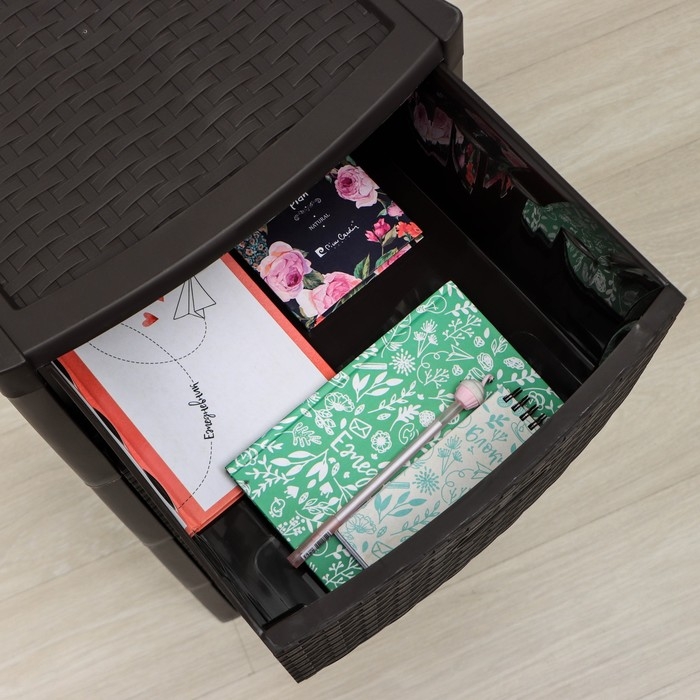 С помощью практичного пластикового комода вы правильно организуете хранение вещей. Изделие имеет жёсткую конструкцию за счёт цельных боковых стенок. Отсутствие острых углов делает его безопасным для ребёнка. Комод изготовлен из экологически чистого материала, не содержит вредных веществ.