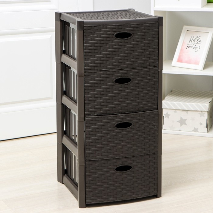 Комод 4-х секционный «Стиль ротанг», цвет коричневый