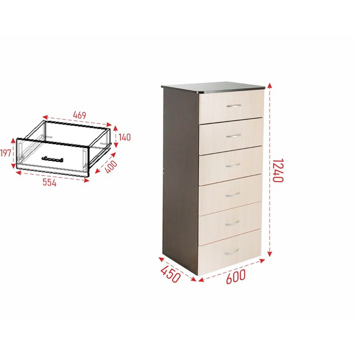 Комод №5, 600х450х1250, Венге темный/Венге светлый
