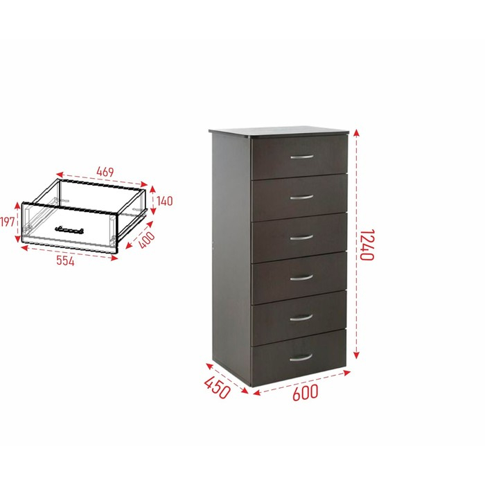 Комод №5, 600х450х1250, Венге темный
