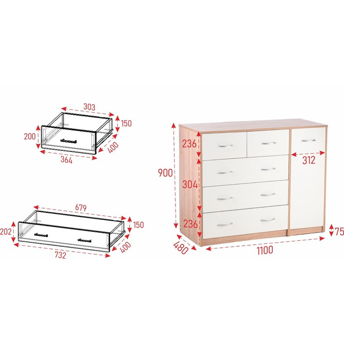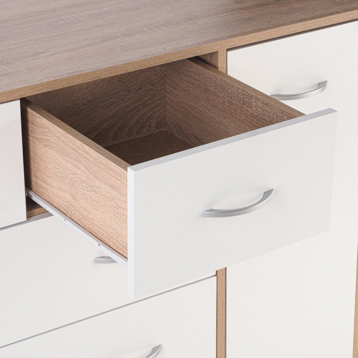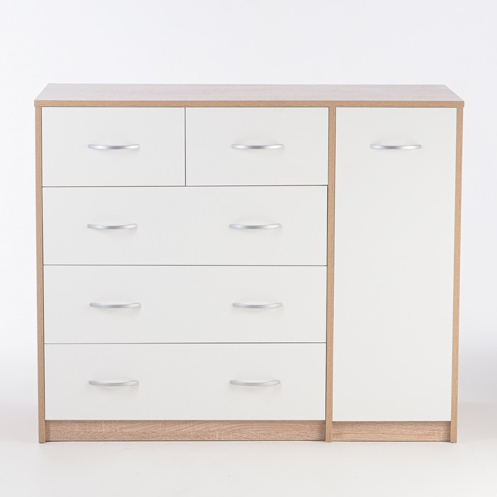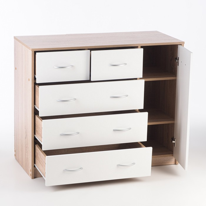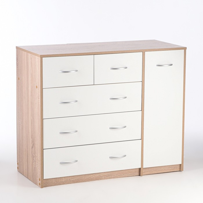 Комод 5 ящиков с дверью, 1100х480х900, Дуб сонома/Белый