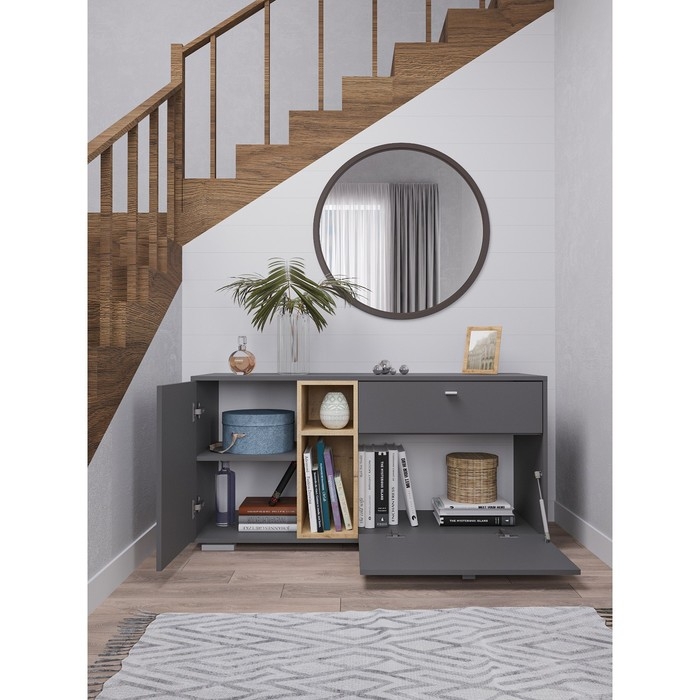 Комод Ланс, 1314х430х647, Графит/Дуб бунратти