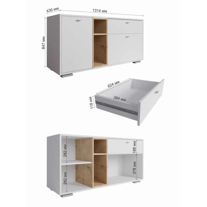 Комод Nova, 900х410х742, Белый/Бетон