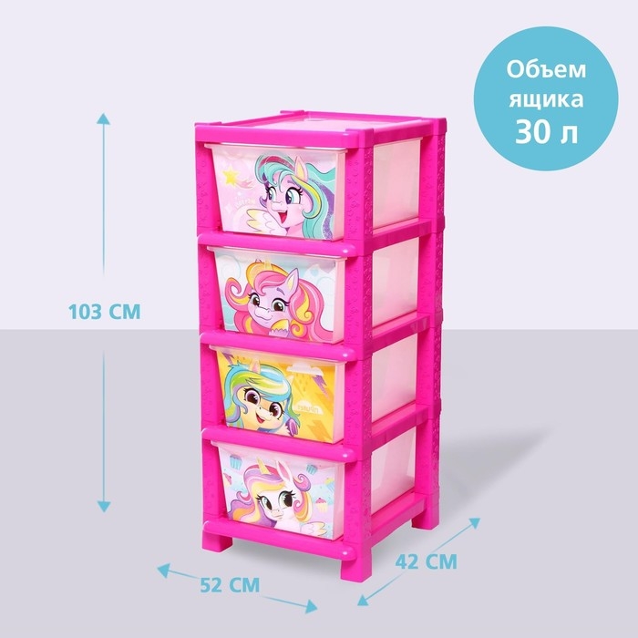Комод «Милые единорожки», 4 секции