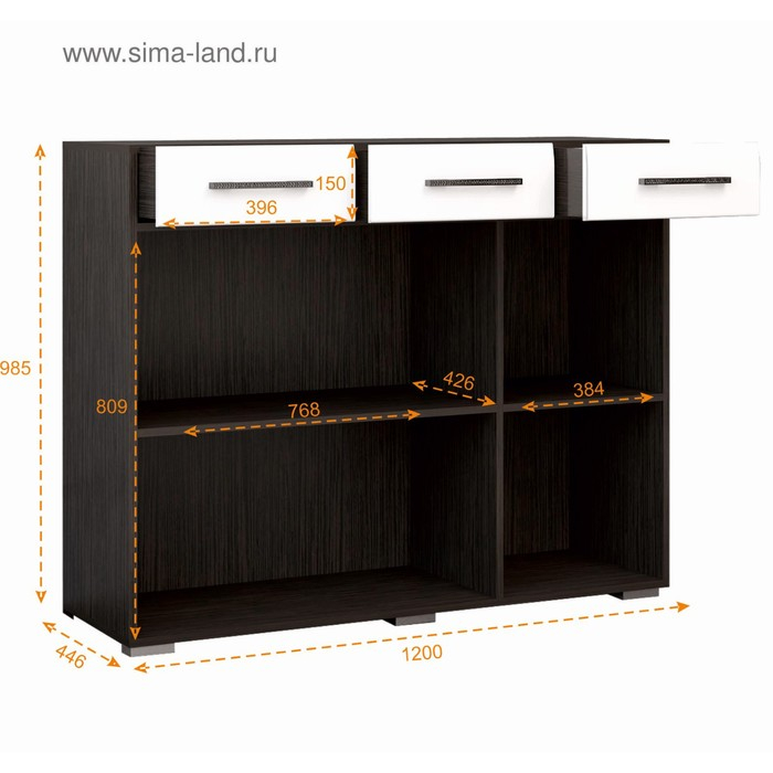 Комод Ненси МДФ ,1200х985х446, Венге/Белый глянец