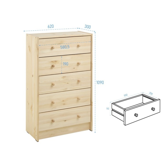 - Комод сделан из прочного и экологичного материала – массива сосны.
