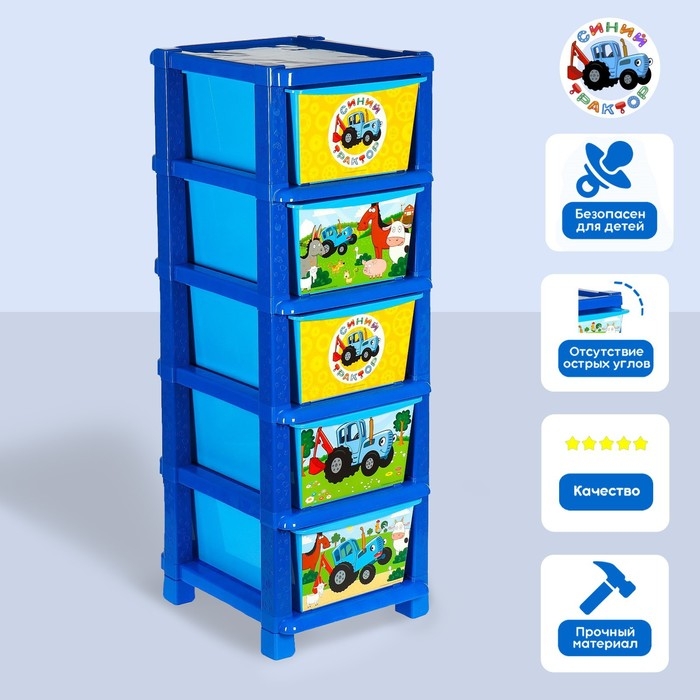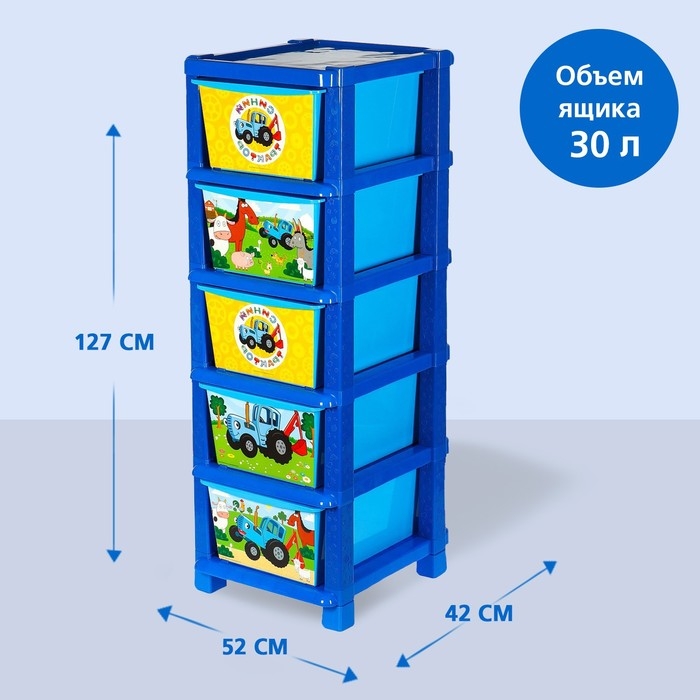 Комод универсальный №1 «Синий трактор», 5 секций, 127 × 52 × 42 см