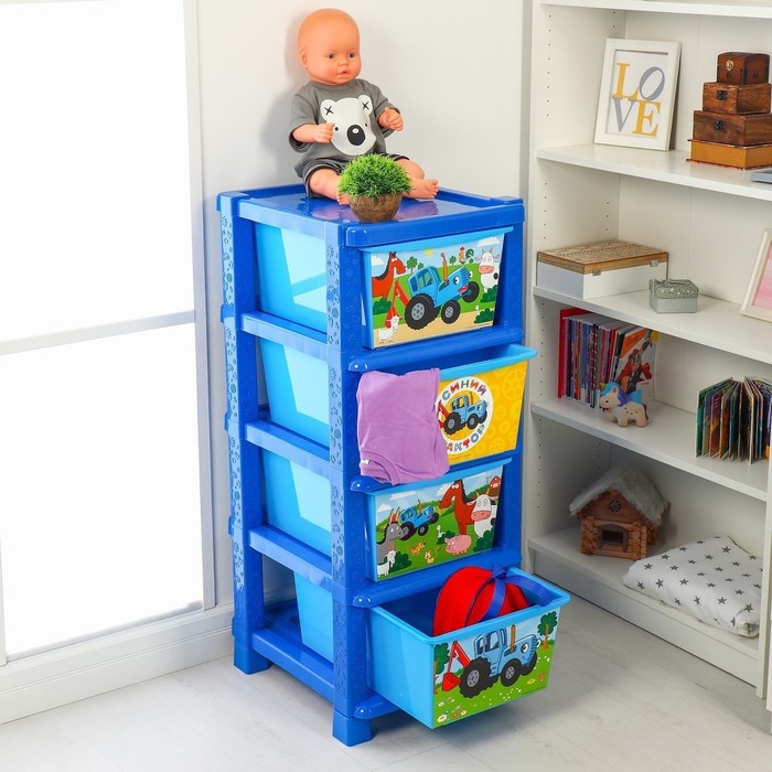 Комод универсальный 103 × 52 × 42 см, 4 секции, ящик 51 х 36 х 20 см, Синий трактор